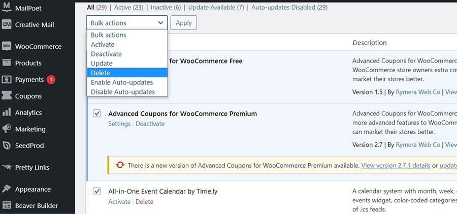 It’s a good idea to regularly take stock of the themes and plugins installed on your site and delete any you no longer require.